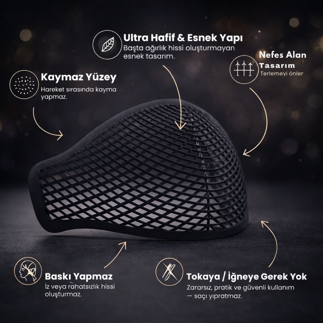 Esnek ve konforlu tasarımıyla başını sıkmadan rahat uyum sağlar. Başörtünün gün boyu daha sabit ve düzenli durmasına yardımcı olur. Tüm şal ve eşarp modelleriyle uyumludur.
